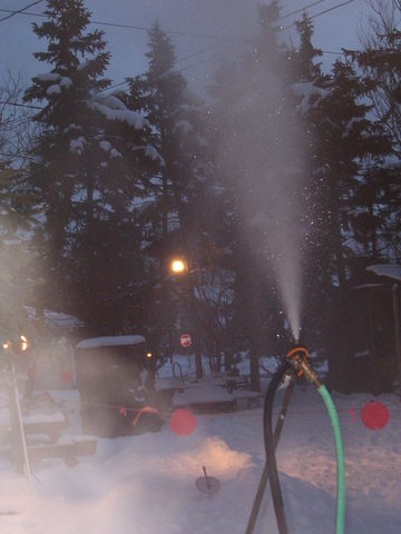 Check out the new tower gun! Amazing amounts of snow that thing makes. It looks so sweet when it is on.